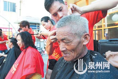 志愿者细心帮大爷理发 风吹日晒 更需打扮 新门社区环卫工江仁月早早就到了活动现场,坐在椅子上,观察别人。“我要先看看哪个理发师的手艺好,再决定让谁帮我理发。”江仁月笑着说,这个活动很受大伙儿的喜欢。 江仁月32岁来泉州,至今已18年了,新门社区居委会书记都换了4届,他还是在老地方,干老工作。“这里环境好,社区、街道办事处对我们也很好。”他说,有老乡待在泉州的时间比自己还长,他知道的就有长达23年的。 40多岁的李菊华不做发型,不美甲,只为修眉、画眉而来。她是海滨街道办事处的环卫工,结伴而来的同事有10来个。李菊华画眉时,大家就在旁边耐心排队等待。50岁的蒲女士是四川人,看着李菊华的眉毛经美容师一捯饬,人就年轻了10岁,她说:“天天风吹日晒雨淋,再美的花儿也会变丑,还是要打扮打扮。” |