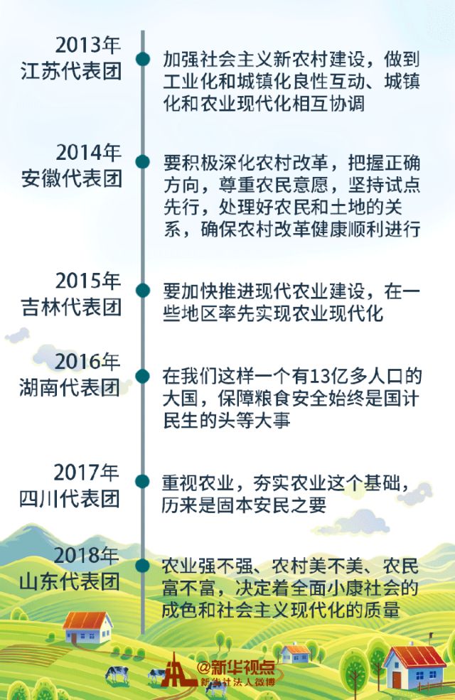 党的十八大以来,每年全国两会期间下团参加审议,习近平总书记都会谈到“三农”问题。语重心长,充满深情。