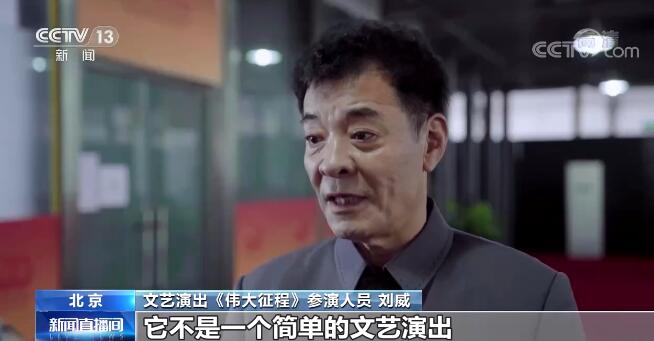在这个节目中,参演学生还要整齐地挥动一面宽2米长4米的红色旗帜,左右和上下摆动必须整齐划一。 在追求舞台艺术精益求精的同时,很多参演的学生在排演中被党的奋斗历程所激励,被党的伟大精神和感人故事所鼓舞。 文艺演出《伟大征程》参演人员 刘威:在那个瞬间真的是就被撼动了,那种激动是平常演戏很难找到的。这么多的艺术家同时出现在一个舞台上,它不是一个简单的文艺演出。