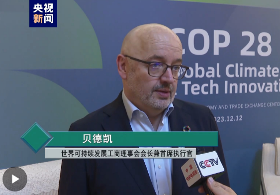 世界可持续发展工商理事会会长兼首席执行官贝德凯长期关注中国生态文明建设。11月30日至12月12日,《联合国气候变化框架公约》第二十八次缔约方大会(COP28)在阿联酋迪拜举办,贝德凯出席大会。其间,中央广播电视总台记者对贝德凯进行了采访,他对中国为应对气候变化付出的努力予以了高度评价。 世界可持续发展工商理事会会长兼首席执行官 贝德凯:我认为中国提出的“双碳目标”正当其时,即2030年前实现碳达峰,2060年前实现碳中和。更重要的是,如果看看中国各行各业的领导者都在做些什么,我们能看到中国能源转型的速度,能看到满街飞驰的新能源汽车,这些都是不可思议且令人鼓舞的。中国正在经历能源结构转型。如果继续这项工作,如果世界各国的领导人能够齐心协力,我们就很有希望共同应对气候变化的挑战。我认为“美丽中国”是一个恰如其分的描述,人类需要和自然和谐共生,这正是美丽中国建设所倡导的,我完全支持。(总台记者 周宣) |