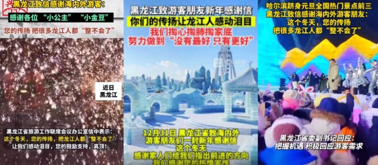 这个元旦,黑龙江全员疯狂整活 跨年晚会、冰雪嘉年华 烟花秀、打铁花、美食节…… 各种好吃好玩好看好实惠的活动 直接把跨年仪式感和氛围拉满 开局一封信,是感谢是承诺是热情 LOVE HLJ 假期前一天 黑龙江省旅游联席会议办公室发出 《致海内外游客朋友们的新年感谢信》 感谢游客们的热烈奔赴 热心建议和热情宣传 向大家真诚发出2025年亚冬会之约⬇ “感谢信”在五千多个平台发布引起热议,全网浏览量突破1.2亿次。其中,人民日报客户端浏览量达100万+,中央2台、中央13台等央媒纷纷报道。