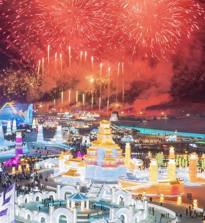 哈尔滨冰雪大世界延时闭园 雪地蹦迪、灿烂烟火、明星空降…… 为大家上演了一场 热闹炫目的冰雪跨年夜!