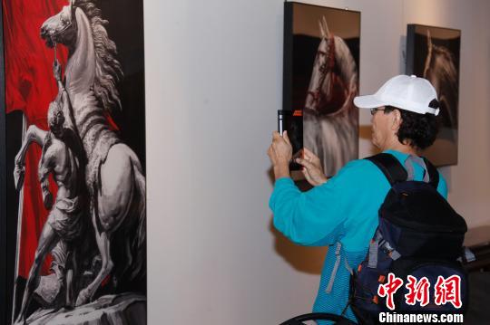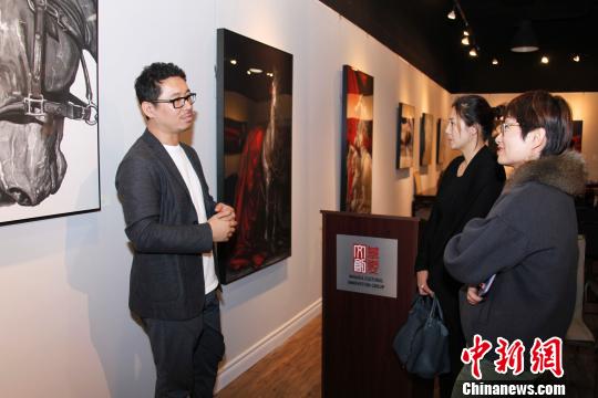 图为孙浩(左一)在展厅与观众交流。 余瑞冬摄 孙浩表示,其笔下“马”的肖像实为“人”的肖像,折射的是自己对待生活和生命的态度。他认为,中国当代水墨创作需要更多地与世界艺术同行交流。也期待中国年轻艺术家在向外界展示作品的过程中,与世界各地、各民族艺术家交流互动,从而不断推进自身艺术积累。 出席画展开幕式的中国驻多伦多副总领事庄耀东评价说,孙浩的画作大气磅礴、刚柔相济、有血有肉、有情有义,体现出中国“马文化”所蕴含的自强不息、拼搏奋进、积极向上的精神。