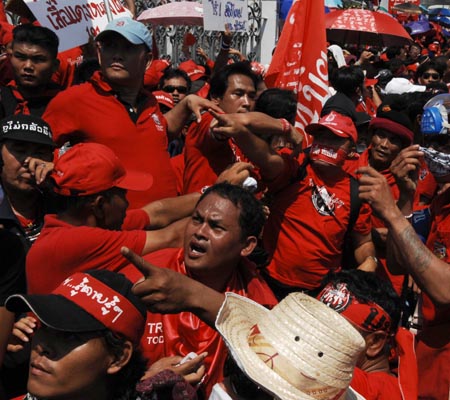 泰国两万"红衫军"包围总理府 五千军警戒备