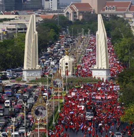 泰国两万"红衫军"包围总理府 五千军警戒备