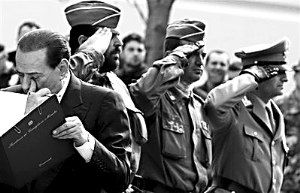 10日,贝卢斯科尼参加地震遇难者集体葬礼。