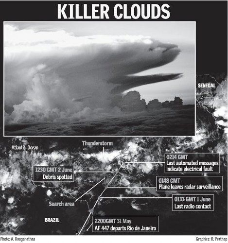 图像数据是由METEOSAT-9卫星在巴西时间5月31日23时获得的,巴西阿拉戈阿州联邦大学气象站对其进行了分析。该气象站的气象学家乌姆贝尔托·巴尔博萨说,这些图像表明当时的天气条件非常罕见,因此分析认为飞机失事是由反常的天气条件造成的。