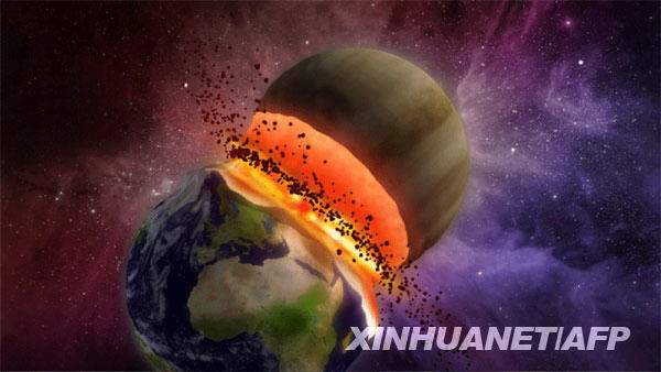 《自然》出版集团提供的地球与金星相撞的模拟图。新华社/法新