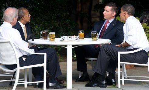 奥巴马与种族风波当事双方在白宫喝啤酒(图)