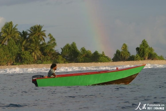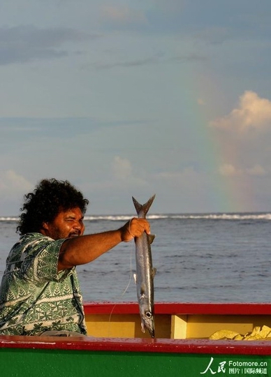 图瓦卢实拍:一渔民在捕鱼。