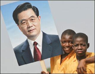 利比亚儿童手举中国主席胡锦涛的画像