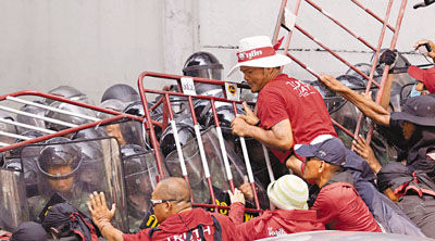 曼谷连续4天瘫痪 万名"红衫军"冲破军警防线