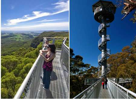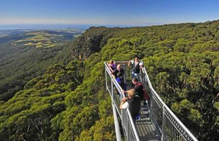 澳大利亚的伊拉瓦拉飞天道历时5个月建造完成,最近刚刚向游人开放。这个观景台位于南部高地罗伯逊附近的骑士山峭壁之上,周围被距地面25米的雨林树冠所环绕。借助于一个刚结构平台,游客可以领略在雨林树冠中间穿行的感觉。伊拉瓦拉飞天道的最大亮点当属500米长的高架人行道,人行道上装有多个悬臂,可以将游客送向峭壁边缘,让他们尽情感受从基亚马到蚬壳港的整条海岸线的壮观景象。