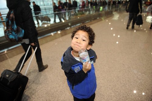北京,2011年2月1日 首批第一架搭载滞留埃及同胞的飞机抵京 2月1日,刚刚抵达北京的小朋友王若格在机场摆造型。 当日16时50分,首批第一架搭载滞留埃及同胞的飞机抵达北京。第二架飞机将抵达广州。两架飞机共搭载480名滞留同胞。 新华社记者 金良快 摄