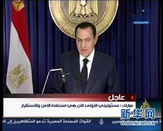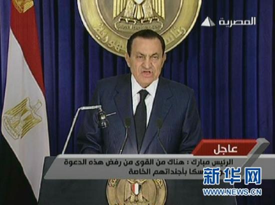 埃及总统穆巴拉克发表电视讲话说,他不寻求竞选下届总统。新华社/法新