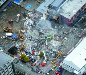 22日6.3级地震后,坎特伯雷电视台大楼几乎被夷为平地。