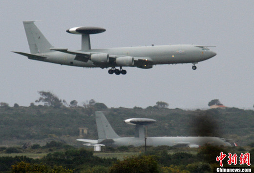 3月20日,在位于塞浦路斯的英国阿克罗蒂里空军基地,一架英国皇家空军飞机准备着陆,另一架飞机停在后方。美国国防部联合参谋部主任威廉·格特尼19日在五角大楼新闻发布会上透露,在第一波袭击中,美国和英国的军舰和潜艇向利比亚海岸的20多个防空目标发射了112枚战斧式巡航导弹。