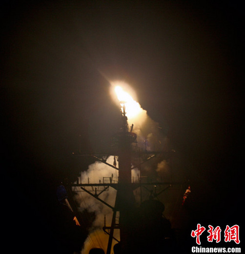 这张美国海军新闻部门提供的照片显示,3月19日,美军驱逐舰向利比亚发射“战斧”巡航导弹。美国国防部联合参谋部主任威廉·格特尼19日在五角大楼新闻发布会上透露,在第一波袭击中,美国和英国的军舰和潜艇向利比亚海岸的20多个防空目标发射了112枚战斧式巡航导弹。