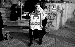 7日,班加西,一位老人拿着遇难亲人的遗像。