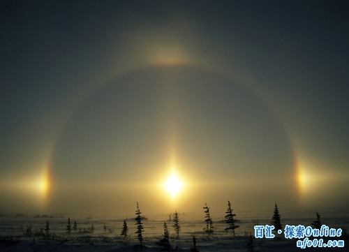 幻日在天空出现的半透明薄云里面,有许多飘浮在空中的六角形柱状的冰晶体,偶尔它们会整整齐齐地垂直排列在空中。当太阳光射在这一根根六角形冰柱上,就会发生非常规律的折射现象。当这许多的冰晶在朝阳或夕阳附近时,从冰柱出来的三路光线射到人的眼睛中,中间那路太阳光线,是由中间位置的太阳直接射来的,是真正的太阳;旁边两条光线,是太阳光经过六角形晶柱折射而来的。这样,在人们的眼中,在中间真太阳的两边就出现了另外两个太阳,它们实际上是太阳的虚像。搜奇网www.sOU7.Net
