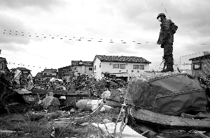 3月25日,福岛,一名日本自卫队员检查震后的损失。