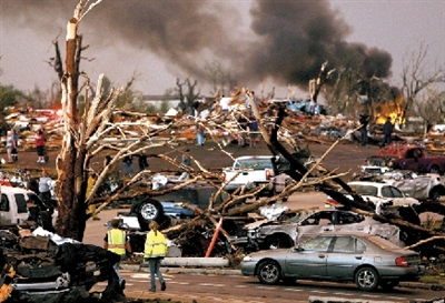 根据美国气象局的报告,在过去的48小时内,共有46场龙卷风袭击了美国中西部7个州。拥有5万人口的密苏里州乔普林市是受创最为严重的地区,龙卷风摧毁了当地的医院、中学以及大片居民区,这座城镇的很多建筑如今已"不复存在"。当地官员形容龙卷风过后,当地就像被彻底破坏的"战区",进出城市的公路被严重破坏,电力设置大面积受损,电话线路也几乎彻底中断。现在乔普林市的医院已经接受了数百名受伤的市民,人满为患,供给也得不到充分的补充,市府不得不开放当地的学校作为临时接收伤者的治疗中心。