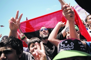 数千名利比亚反对派民众涌上街头,庆祝国际刑事法院签发卡扎菲通缉令。