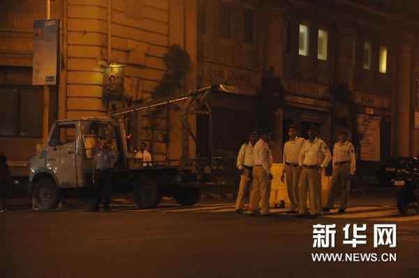 7月13日,印度孟买警方在一个爆炸现场附近封闭的路口警戒。印度金融中心孟买当晚发生的3起连环爆炸导致的死伤人数上升。据报道,目前已有21人死亡,141人受伤。 新华社记者刘亚南摄
