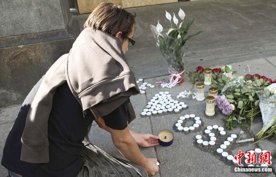 7月23日下午,一挪威人在首都奥斯陆市中心祭奠逝者。7月22日下午,挪威首都奥斯陆市中心及郊外一座小岛先后发生爆炸和枪击事件。根据最新消息,两起暴力事件已造成至少92人死亡。中新社发沈晨 摄