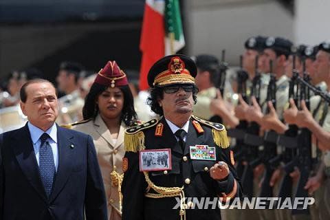 2009年6月10日,意大利总理贝卢斯科尼(右)与到访的利比亚领导人卡扎菲在罗马出席记者会。