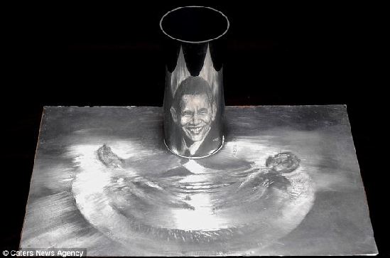 印度艺术家画奥巴马像 独创反射变形画法(图)