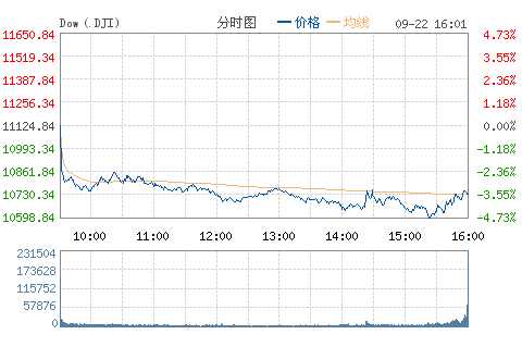 美国失业申请数据坏于预期,市场质疑美联储4000亿美元国债置换项目难以提振经济,欧债危机未见好转,几大利空重创全球股市,恐慌情绪引发投资者抛售,周四美股低开低走,道指收盘大跌391.01点,跌幅3.51%,纳指跌82.52点,跌幅3.25%。