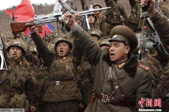 资料图:当地时间2012年3月4日,朝鲜在西南海岸军事基地举行军事演习,以抗议韩军辱朝行为。