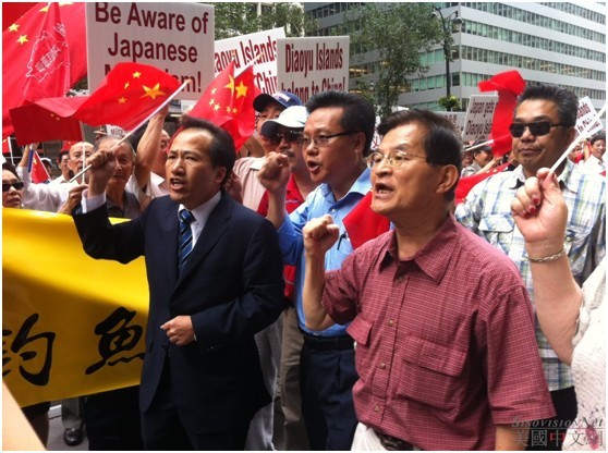 纽约上千华人在日本领事馆门前举行保钓示威(图)