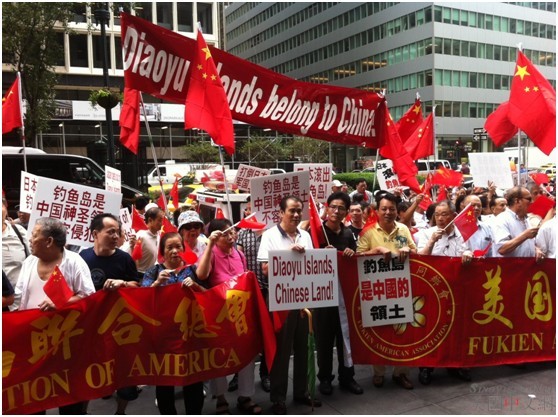 纽约上千华人在日本领事馆门前举行保钓示威(图)