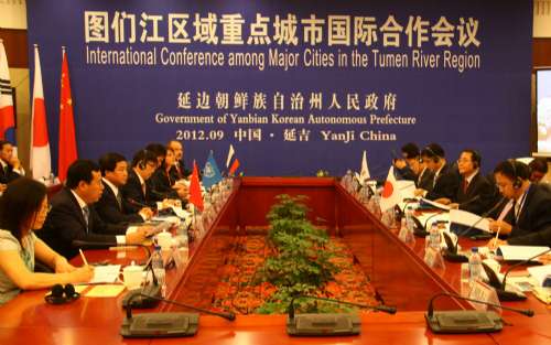 图:图们江区域重点城市国际合作会议上,中俄日韩共谋新东北亚时代陆海联运航线\本报摄 2日,图们江区域重点城市国际合作会议在延吉召开,中、俄、日、韩四国在会上提出新东北亚时代陆海联运航线互利共赢合作方案,以求进一步推动东北亚区域经济发展。 联合国开发计划署图们秘书处主任崔勋表示,经过20多年的发展,“大图们倡议”已成为图们江区域乃至整个东北亚地区重要的政府间经济合作平台。在“大图们倡议”四个成员国──中国、蒙古、韩国和俄罗斯政府的共同努力,以及东北亚地区其他国家和国际组织的不断支持下,“大图们倡议”已在关键的合作领域,如:交通运输、旅游、贸易与投资等方面取得了切实有效的进展。 据了解,多年来,东北亚地区各国虽有很强的经济互补性,但交通的不便成为巨大阻碍。 最近几年,在联合国开发计划署的推动下,滞缓多年的大图们江区域合作开发呈现回暖趋势,直接推动了东北亚的经贸发展。随着该地区客流和物流的增加,各国对打通新东北亚时代陆海联运航线的呼声日益高涨。 |