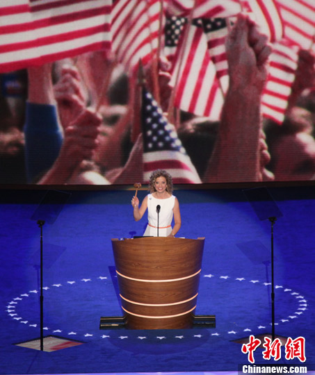 美国民主党全国代表大会当地时间4日在北卡罗来纳夏洛特开幕。图为民主党全国委员会主席舒尔茨宣布大会开幕。中新社发 李洋 摄