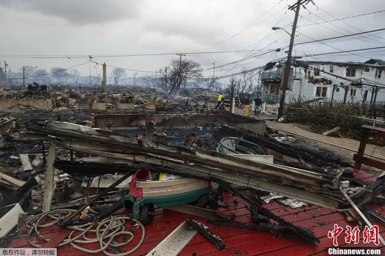当地时间10月30日,飓风“桑迪”裹挟着狂风骤雨重创了美国东海岸,飓风所经过之处一片狼藉。图为纽约皇后区遭到“桑迪”的袭击后,一片瓦砾。