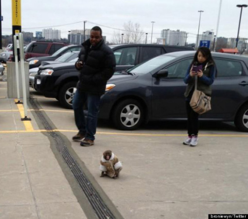 小猴穿外套街头闲逛 “人模人样”引围观(图)