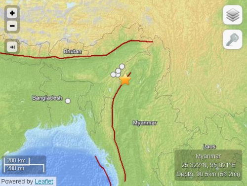 原标题:印度缅甸交界发生5.8级地震 距人口城市90公里