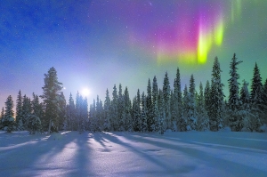 瑞典,绚丽的极光在欧洲的北极边界上旋舞。