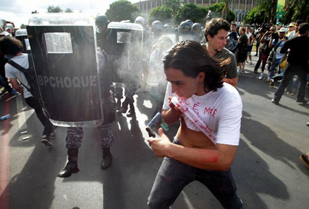 巴西数千民众抗议世界杯花费过多 警方动用催泪瓦斯