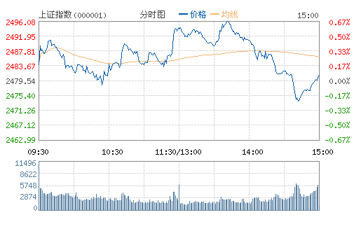 腾讯财经讯 今日早盘沪深两市在美股大涨的消息刺激下小幅高开,随后出现一波回落,沪指一度跌至2477.39点,但在60均线的支撑下反身向上,市场追高买盘显然并不积极,临近午间收盘部分多头资金再次进场带动指数快速上扬。午后缩量上行至10日均线处再度受压,成交量与昨日相比明显萎缩。临近尾盘,沪指快速下跌并翻绿。