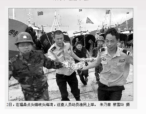 福鼎市沙埕港在2006年的“桑美”台风中曾遭遇重创。记者2日上午在这里看到,在沙埕港码头,数百艘大小渔船陆续回港避风,渔民们忙着收拾渔网渔具,锚泊加固渔船。不少原本停靠在沙埕港内外沿的大小船只,也重新转移到沙埕港腹地进行避风。