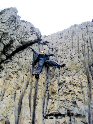 “挂前川”虽然也打着寻找创作灵感的旗号,可更像是一种“行为艺术”。近年来,诗人已经成为最热衷于“行为艺术”的群体之一。在这里不想举例子,反正干啥傻事的“诗人”都有。我倒不担心“诗人”会从乌江绝壁上掉下去变成“湿人”,我担心的是,如果诗人们不能老老实实把精力放着好好写诗上,而是继续胡闹,“你怎么那么诗人啊”会不会成为流行语呢? (乔志峰) (资料图片:张成多次进行绝壁体验,并将图片放在博客上)