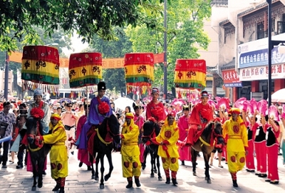 昨日上午,肇庆市德庆县城的宋街和孔庙仿佛时光倒流回到宋朝时代:一大队穿着宋代服装的人马出现其中,现场处处罗伞,鼓乐齐鸣,六艺齐舞。这里正上演第八场“状元礼”,来自全省各地的高考“状元”前往参礼。8年来,共有30多名高考“状元”参加了该活动。(据8月3日《南方都市报》)
