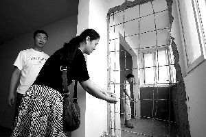 近日,西三旗瑞旗家园,两住户装修时发现墙壁酥脆。25日,两家业主的阳台隔断已被推倒。