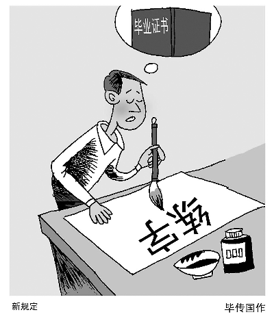 毕业就要写好钢笔字、毛笔字、粉笔字,记者7日从江西省赣南师范学院了解到,从今年开始,该校师范类专业学生必须参加教师职业技能“三字”考核,成绩合格方可毕业。教师是学生的镜子,教师写一手好字,既可以丰富为人师表的内容,也可以给学生一个富有审美形象的精神境界。重视教师职业技能的“三字”考核,就像说好普通话一样,是教师应具有的一种职业要求。