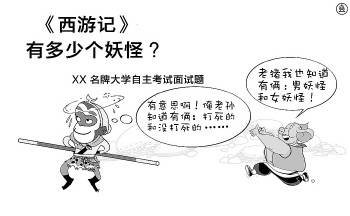 ![]() 漫 画/ 李晓宜 复旦大学2013年自主选拔录取改革试验面试8日至10日举行。继去年一道“如来佛祖和玉皇大帝谁大”的题目在网上疯传,争议颇大之后,今年,考官似乎仍然对《西游记》感兴趣,有同学就被一位考官问道:《西游记》里面一共有几个妖怪?(3月11日《杭州日报》) 同“如来和玉帝谁大”一样,今年这道“《西游记》有多少个妖怪”再次引发网友热议。不过,此类“奇葩考题”尽管一再颠覆了我们对传统考题的认知,却并非无厘头,而是体现了对现行考试模式的革故鼎新,有利于更好地考查考生的发散思维和反应能力。 一直以来,我们的教育和考试过度推崇标准答案与定势思维,极大限制了学生活学活用的能力。很多人往往“知其一,不知其二”,死记硬背可以对答,同样的知识点换一种提问方式,可能就不知所措。同时,这种机械的考查方式之下,应试教育根深蒂固,各种答题技巧、面试法宝充斥市面,导致考生的答案千人一面,选拔人才的作用大打折扣。 与全国统一招考相比,各高校自主招生自由度更大,应该为教育考试的创新作出有意探索。必须看到,一些考题看似雷人,实则给了考生充分展示自我的机会。比如,去年这道“如来和玉帝谁大”,就有考生答道“他们一个是道教,一个是佛教,不具可比性”,既巧妙地回答了问题,又在不经意间展示了自己的知识面。事后,有网友用现代企业管理中的矩阵模式进行解释,引发众多跟帖叫好。如果考生也能在考场上如是作答,无疑会给考官留下更深刻的印象。 可以说,只有那些“知其然更知其所以然”的考生,才能触类旁通,灵活运用其中的逻辑思维和幽默艺术,回答好“《西游记》有多少个妖怪”这种题目。 事实上,此类面试问题也是在国外许多著名学府的成熟经验。报考剑桥大学兽医学,会被问道“一只牛体内的水份,占全球水源的百分之几?”。对此,校方的解释是,面试过程极其古怪,就是希望从成绩优异的学生中招收那些思维最敏捷的年轻人。诚如斯言,笔试成绩只能说明学生的做题水平,思维能力才能决定一个人才的发展潜力。 将国际先进经验运用到我们的高校自主招生中,是一种值得肯定的“拿来主义”,不过,有一点需要注意的是,不能学来“奇葩”的形式,丢掉“考查”的灵魂。面试考题不能刻意标新立异,“语不惊人死不休”,而要紧紧围绕考生的个人情况和所报专业来设计,真正达到考查选拔的目的。 |