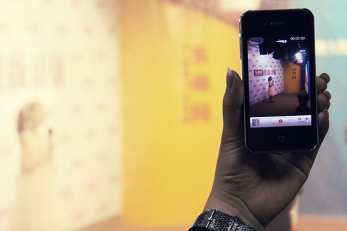 爸爸用手机在外头拍摄